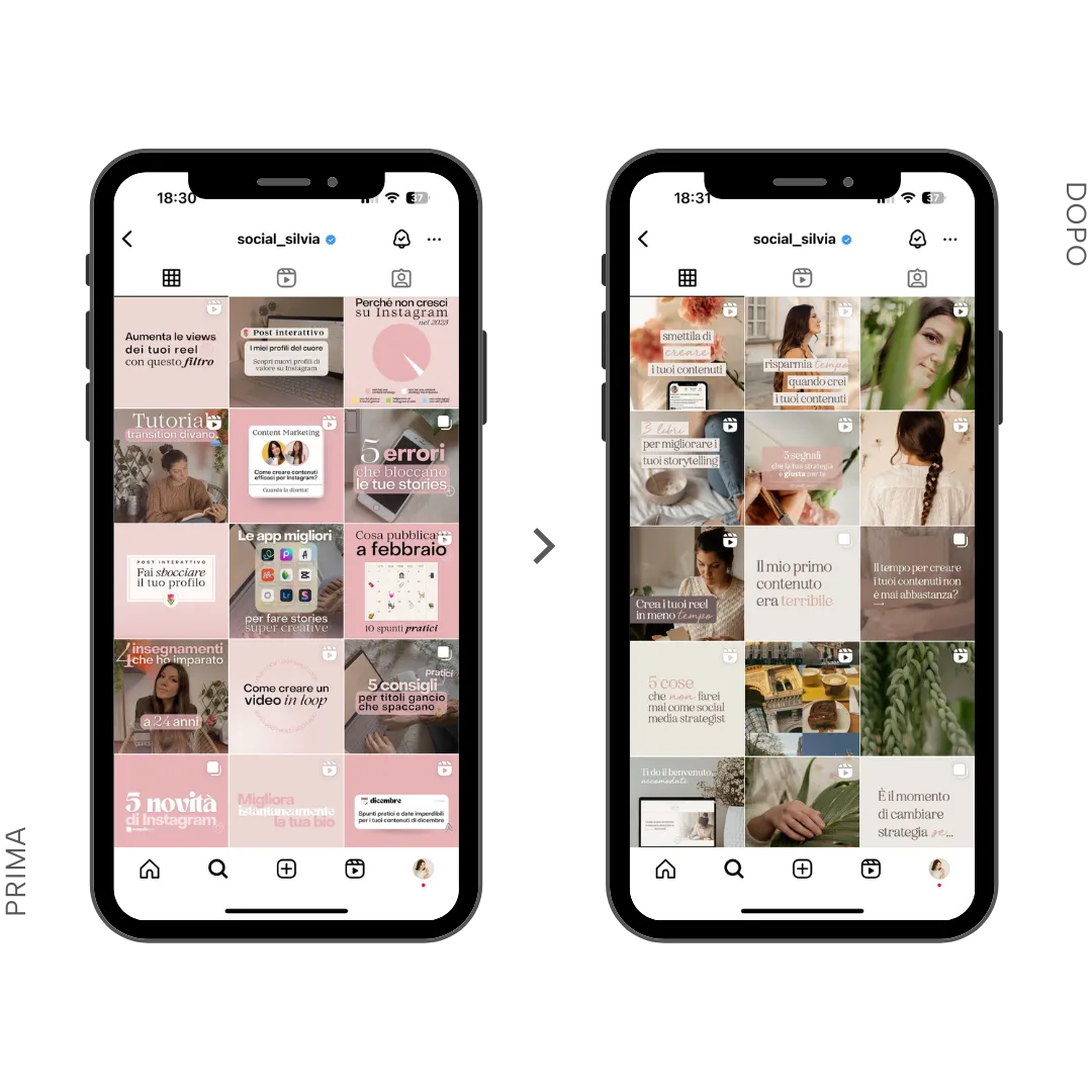 Fai come Silvia che prima del nostro lavoro insieme sentiva che la sua comunicazione non la rappresentava più. Come indossare vestiti nei quali non si riconosceva, non era più sé stessa e questo la bloccava, anche per lunghi periodi, dal comunicarsi online.